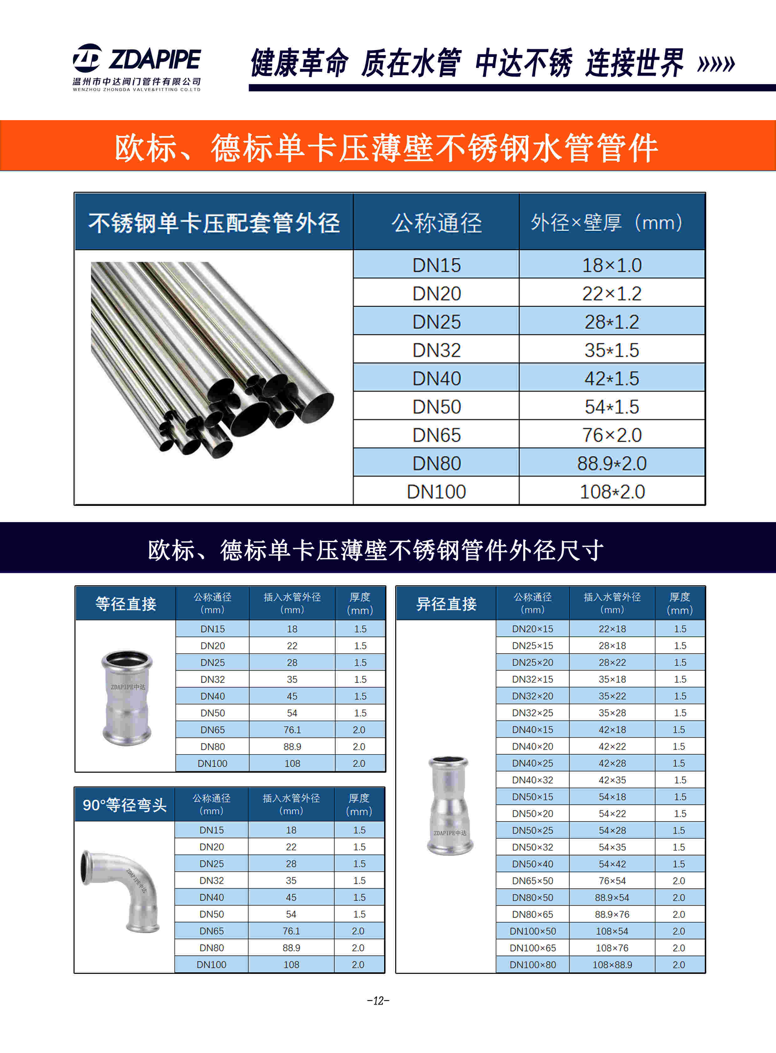 - 用途范圍:卡壓式管件廣泛應用于市政自來水管道工程,新建小區(qū)直飲水工程,工業(yè)與民用 建筑、賓館、公共建筑、睬氣供應等分供水系統(tǒng)。給水,排水,二次供水,太陽能,水務工程,自來水公司,醫(yī)院,學校,酒店,賓館,天然氣工程,自來水工程,直飲水工程,家裝水管工程,工業(yè)管道工程,水處理工程,清潔能源工程,綠色能源,健康革命,質(zhì)在水管,中達不銹,連接世界。